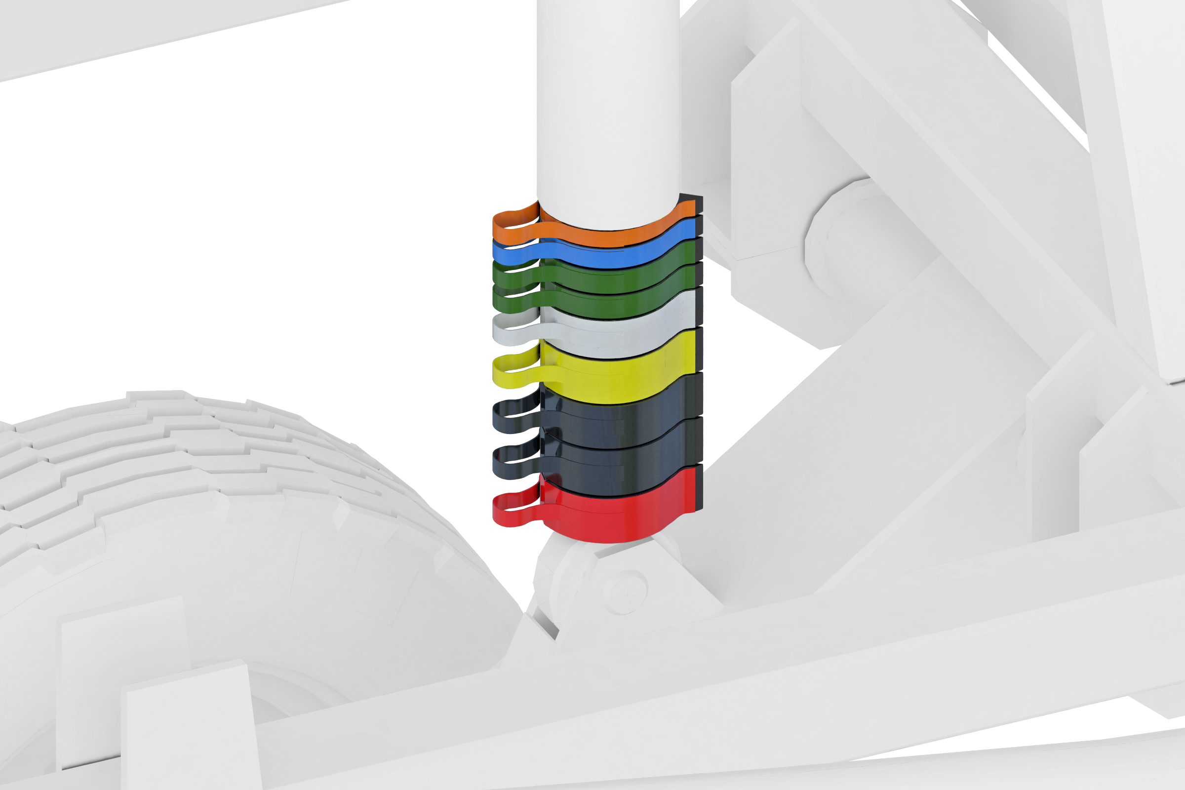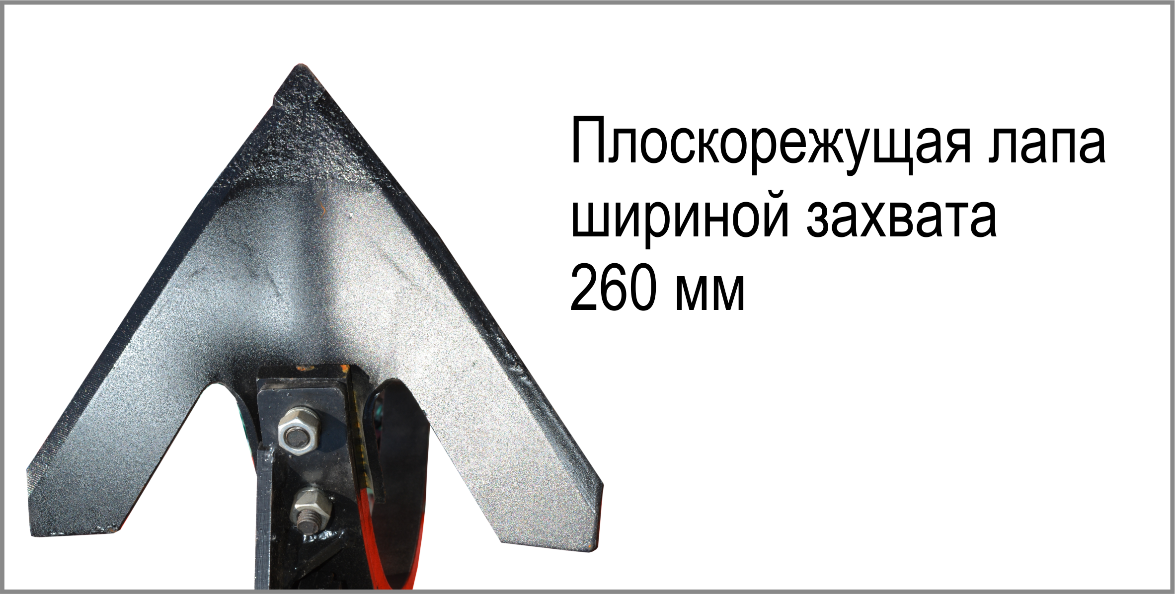 - первые пять рядов - стойки с плоскорежущими лапами шириной 260 мм, сдвоенная пружина создаёт усилие на лапе 1000Н (120 кг), что позволяет качественно обрабатывать почву на заданную глубину и обеспечивает стопроцентное подрезание сорняков, при этом предохраняет от поломок агрегата при увеличении усилия на лапе выше номинального;