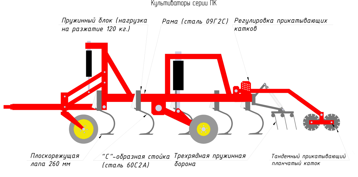 Расширеный номенклатурный ряд культиваторов серии ПК, с рабочей шириной от 3,6 метров 12,0 метров, позволяет оптимально загрузить всю линейку тракторов, применяемых в сельхозпроизводстве.